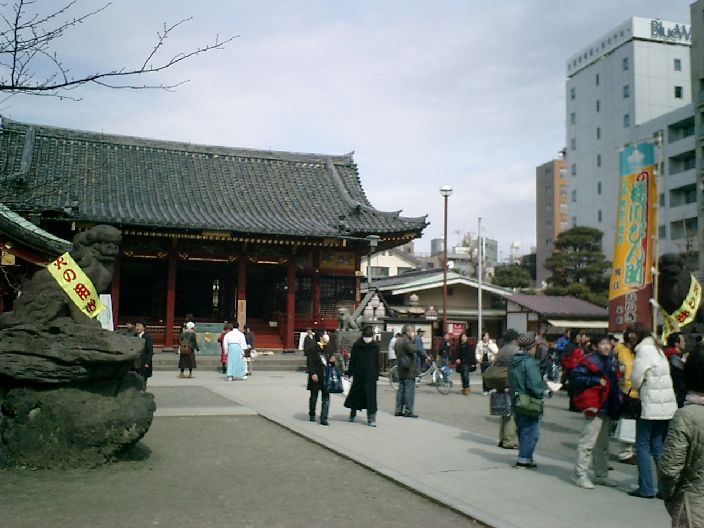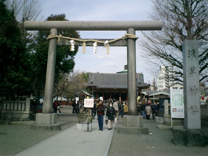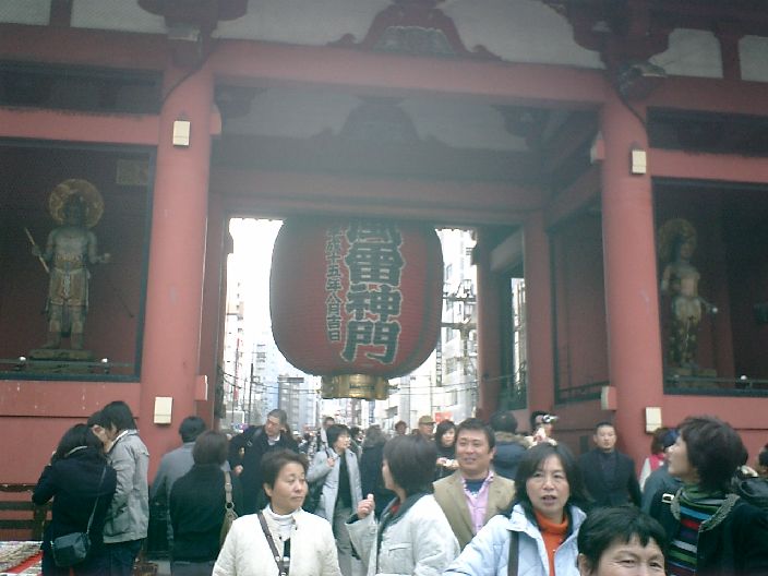 浅草の駅から商店街を通り浅草寺の入り口へ