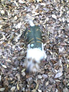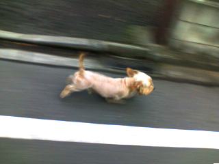 ご機嫌で尻尾をおもいっきり振りながら歩く松に