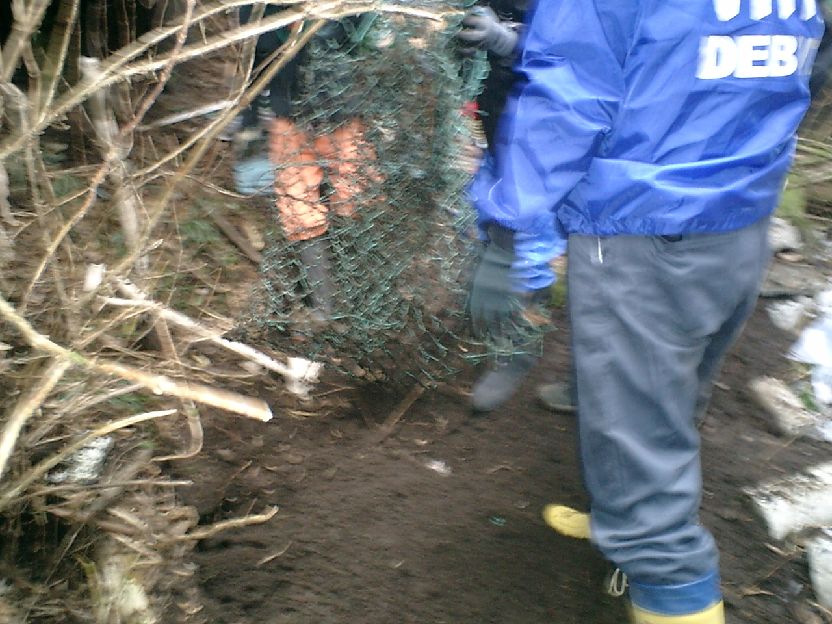 トタン屋根、コンクリートガラ、テレビ、金網、自転車も埋まってました。