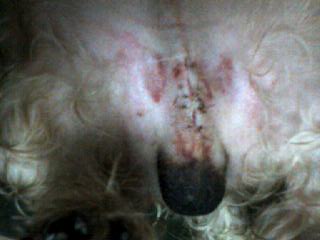 松が傷口を舐めるいけないので