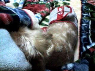 去勢後縫ってある箇所に絆創膏を貼っているのだが