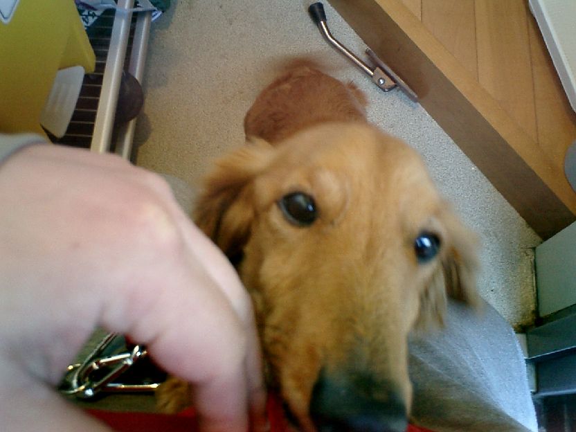 ハーネスのワッカの部分に自分の頭を自分からスッと入れてきて