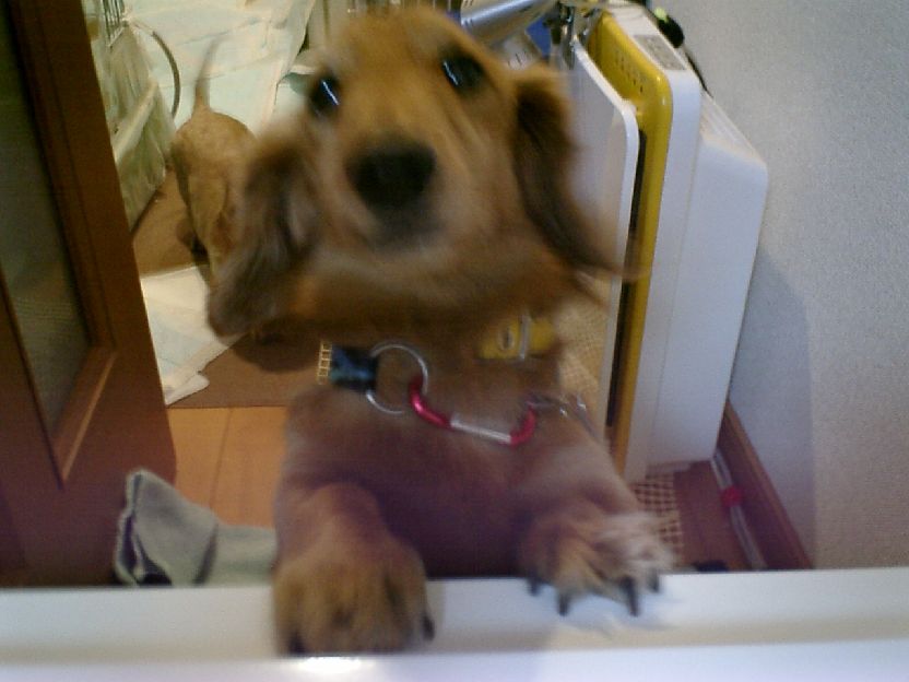 ツカツカと玄関前に歩いてきてご機嫌な顔をします。