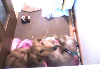 2人ともこのヒーターの裏の毛布の上でくつろいでます。。