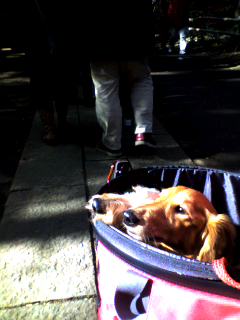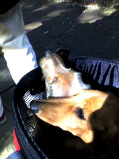 待ってる間は新兵器のカートへ松とポロンを入れて待機。