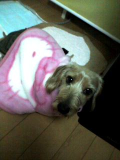 今、ポロンが毛布好きなのでポロンの毛布をポンチョ風にかぶせてみました。