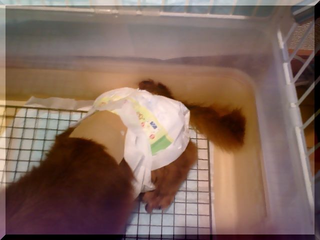 綺麗好きな2代目君のためにオムツをしばらく装着することに。