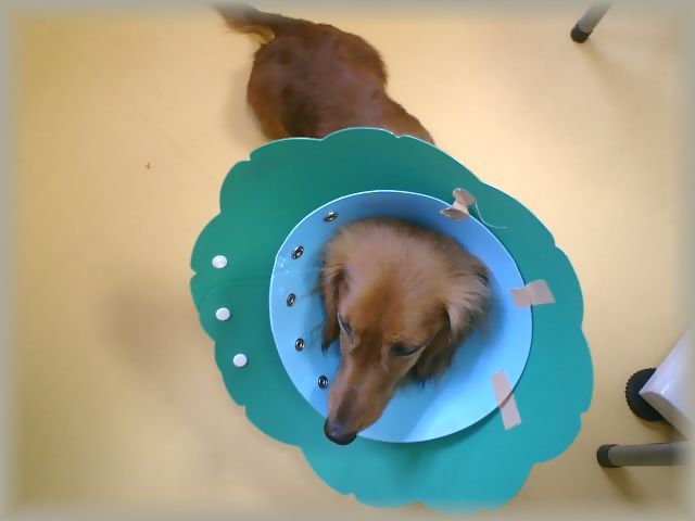 常時着けると散歩できないんでね。このカラーは手術をしたあととか良く見る物です。