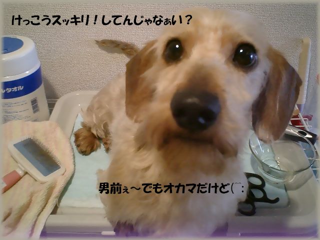 今日は我が家で松とごえもんの散髪と歯磨きをしました。
