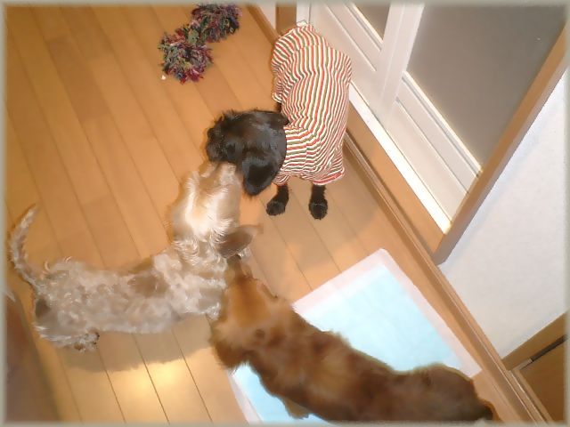 ゲージよりは広いから(一応・・・)今日は廊下に開放して