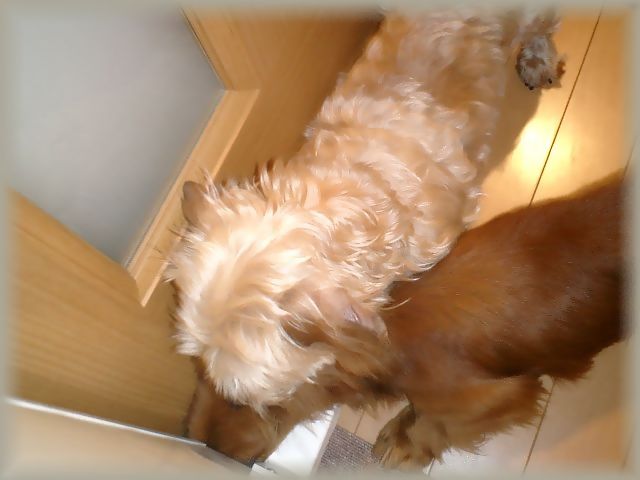 尻尾も振るようになってきたので気分転換に廊下に出してあげると・・・