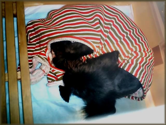 我が家に居るクロシュナ君もパジャマ代わりに全身を覆う服を着せたら