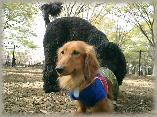 ふと見ると、黒のプードル君がごえもんをチェック。